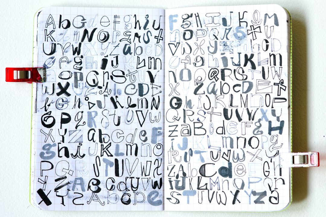Dedicate an entire journal to letters & numbers! I have made several alphabet journals. I also fill pages in my day-to-day sketchbook with letters as quickly as I can. Sometimes I do an entire page of variations of just one letter.