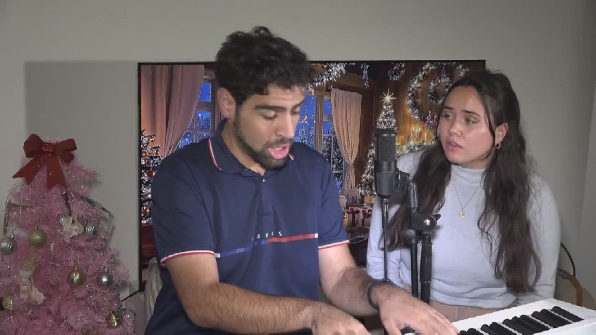 Reporter Claire Alfree and Photojournalist Karim Zabaneh perform Silent Night