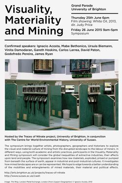 2015 — Visuality, Materiality and Mining Symposium — A multidisciplinary symposium hosted by the Traces of Nitrate Project, exploring the visual and material culture of mining industries. Thursday 25 June 2015,... Events