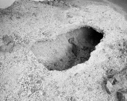 2010 — Caliche Fields — Views of caliche fields at Oficina Alianza and samples of discarded rock around the craters opened by the explosions. Caliche Fields (2010). Photographs © ... Nitrate Geographies