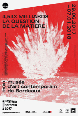 2017 — 4,543 Billion: The Matter of Matter — An exhibition curated by Mariana Cánepa and Max Andrews [Latitudes] at the Musée d'Art Contemporain de Bordeaux. 29.06.2017 – 07.01.2018 What is at stake when a... Exhibitions
