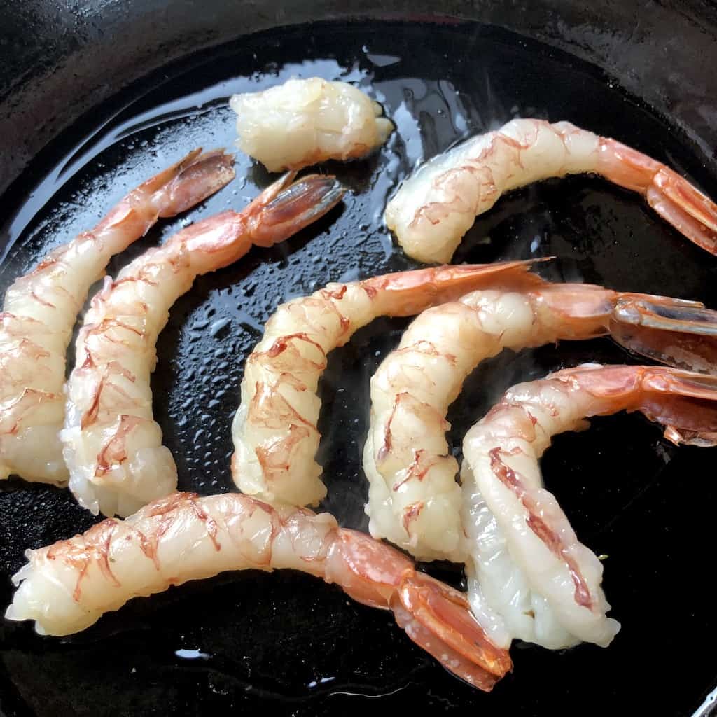 Don't force too many shrimp into the skillet at one time, or you'll end up with steamed shrimp instead. Cook the shrimp in batches if you need to. Leave plenty of room for them to sizzle and cook and get that crispness on the bottoms (which equals flavor).