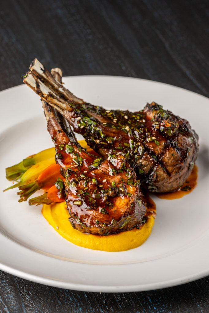 We drooled over our Kung Pao Calamari made with Japanese eggplant, peanuts, and Shishito peppers. As a salad lover, I found the Baby Kale with strawberries, citrus, toasted almonds, pickled onions, and goat cheese topped with a Meyer lemon vinaigrette an absolute delight. Following our server’s recommendation, we ordered the lamb chops served in savory tzatziki – a perfect palate pleaser.