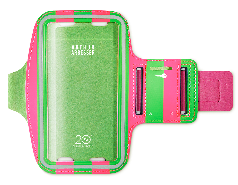 Insieme al packaging, Arthur Arbesser ha disegnato anche una pochette dal pattern allegro ed estivo e un comodissimo Smartphone holder, l’accessorio da portare sempre con sé durante lo sport.