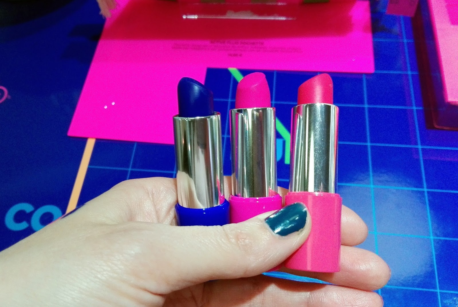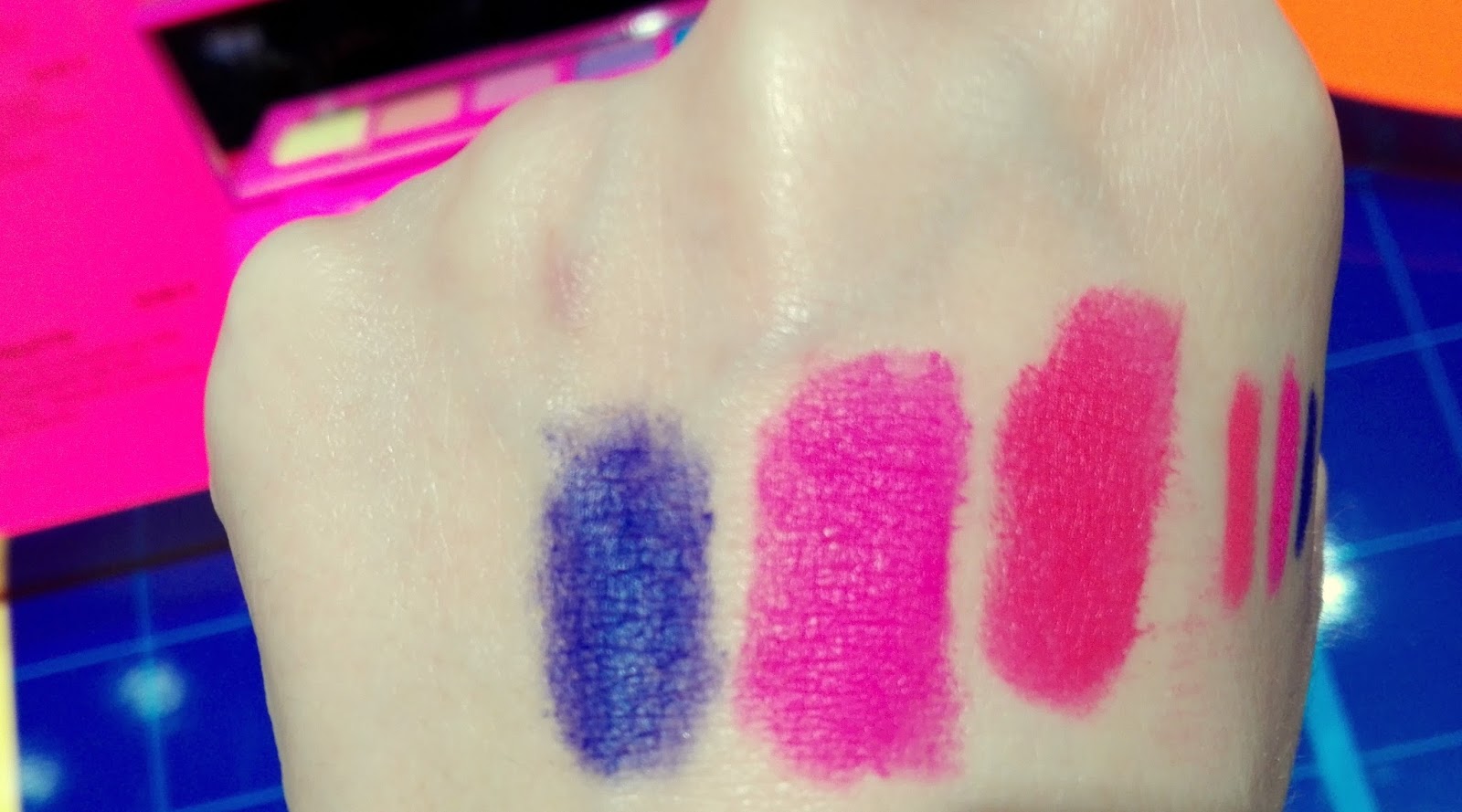 Aderendo alla tendenza FLUO, che in verità è già in auge da parecchio tempo, si è dedicata alle giovani e giovanissime doppiando, in alcuni momenti, sia Urban Decay (palette dalle tonalità molto simili all’ultima UBXBasquiat -> QUI il mio articolo) che NYX (tonalità blu e pop dei rossetti e delle matite)