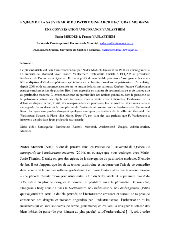 arrow_back_iosENJEUX DE LA SAUVEGARDE DU PATRIMOINE ARCHITECTURAL MODERNEMeddeb NaderdownloadDownload free PDFAbstract