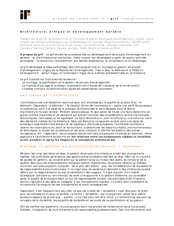Ciro LomontedownloadDownload free PDFArchitecture, éthique, et développement durable