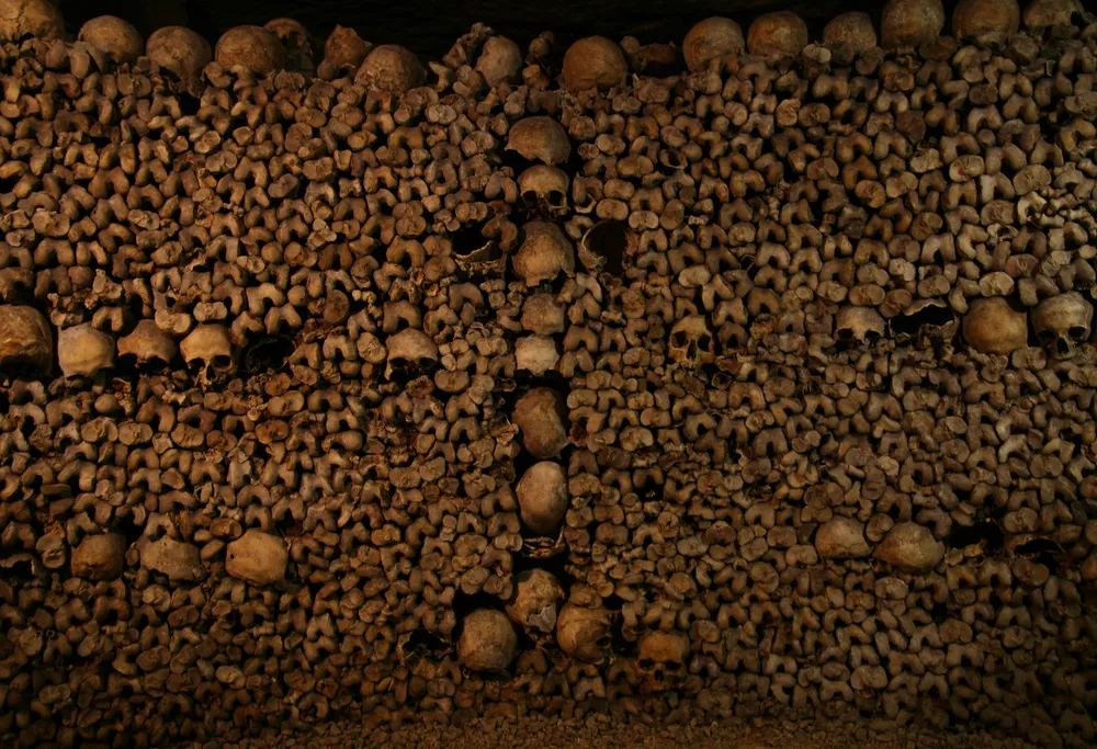 As Paris grew into its a role as a major European hub, it eventually ran into a major problem: by the 17th century, enough people had lived and died in Paris that its cemeteries were overflowing, overstuffed with graves to the point when corpses, at times became uncovered. And so the solution arose to place them in the centuries-old tunnels that had existed beneath the streets of Paris since the 13th century, remnants of a time when limestone quarries were mined to build Paris into a thriving city. By the time these burials ended, 6 million Parisians' bones came to their final resting place in the city's catacombs.