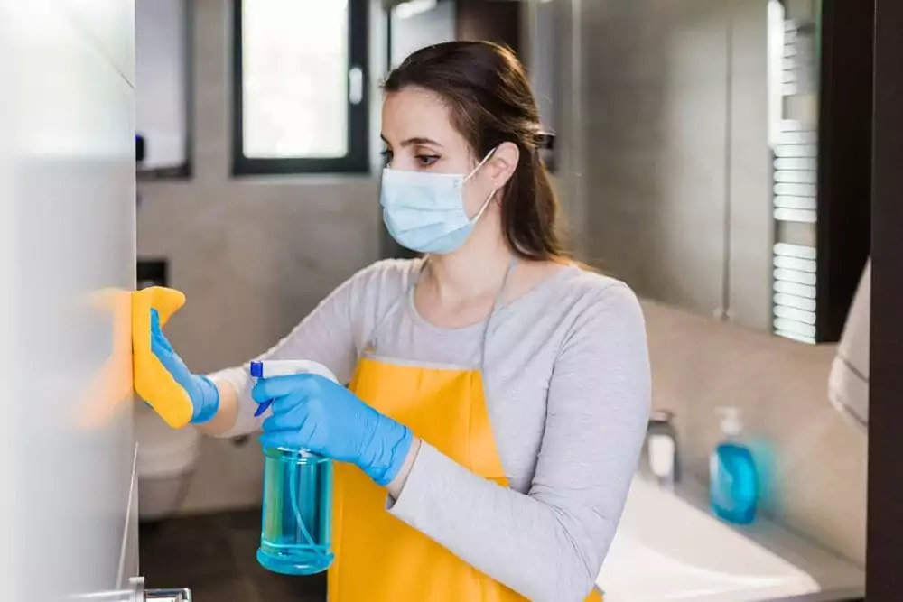 Bathrooms are generally among the smaller rooms in a home, and the semi-enclosed area in a shower stall or a bathtub shower is usually not well-ventilated. Whether you plan to clean with bleach and other chemicals or you prefer to use some of the products that are sitting on your pantry shelf, you need to prepare for the task by focusing on ventilation. Turn on the ventilation fan, and open the window if your bathroom has one. Keep the bathroom door open as well. Wear vinyl cleaning gloves and a face mask for additional protection.