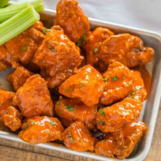 Easy Boneless Buffalo Wings recipe for crispy fried bite sized chicken pieces tossed in buttery tangy hot sauce. The ultimate game day snack! Yield 4 servings Prep Time 30 minutes Cook Time 15 minutes Total Time 45 minutes Course Dinner Cuisine American Author Sabrina Snyder