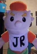 Bowser Junior appears the same as he does in numerous Mario games, with a light green head, a convex tan snout, a single tooth, horns with brownish-orange rings and a dark yellow body. For attire, he wears his trademark bib.