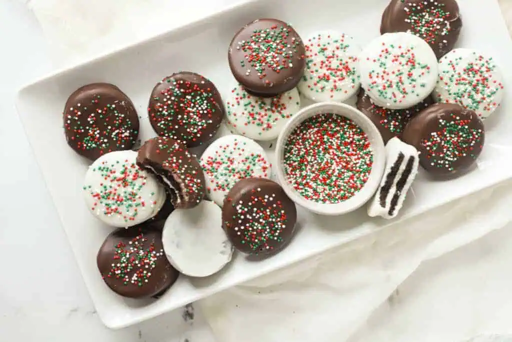 One of my favorite treats to enjoy are chocolate covered Oreos! And they are so easy to make at home, making them a perfect no bake Christmas treat to share with friends and family for the holidays.