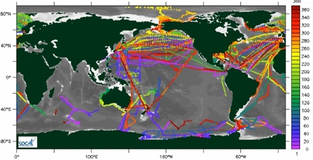 Lors d'une conférence organisée à Paris en 2011 (Unesco), une centaine de spécialistes des mesures du CO2 marin avait rendu publique une nouvelle base de données de fCO2 ou pCO2 (fugacité ou pression partielle de CO2) appelée Socat (Surface ocean CO2 atlas) qui a été récemment actualisée. La communauté s'était alors également engagée à élaborer un travail d'intercomparaison des méthodes permettant d'interpoler et d'extrapoler les données océaniques éparses de pCO2. Ce travail est indispensable : il consiste à simuler les données dans les régions et les périodes sans observations, afin de produire des champs globaux de pCO2 et ainsi d'estimer, entre autres, les flux air-mer de CO2. Cela a conduit à la création du projet international Socom (Surface ocean pCO2 mapping intercomparison), auquel participent des chercheurs du Locean (Laboratoire d'Océanographie et du Climat : Expérimentations et Approches Numériques, UPMC / CNRS / MNHN / IRD) et du LSCE (Laboratoire des sciences du climat et de l'environnement, OVSQ, CNRS / CEA / UVSQ).