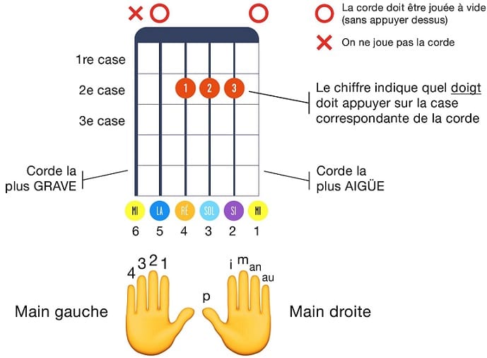 Vous pouvez maintenant commencer à jouer et à apprendre les principaux accords faciles à la guitare. Déjà qu’est-ce qu’un accord ? Un accord c’est une combinaison de notes. Chaque case sur le manche est une note, et nous avons besoin d’au moins 3 notes jouées ensemble pour former un accord. Mais bien sûr, pas n’importe qu’elle combinaison !