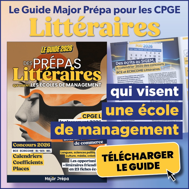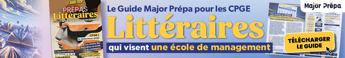 Lire la suite » 1 mars 2026 Aucun commentaire Inscris toi à la newsletter Major Prépa ! Inscription à la newsletter hebdo (popup) Contact PrénomNom de familleE-mailTéléphone :Je suis : - Select -En Classe Prépa (CPGE)Lycéen(ne)ÉtudiantParentProfessionnel ÉduProfesseurCollégien(ne)AutreMa région : - Select -Auvergne-Rhône-AlpesBourgogne-Franche-ComtéBretagneCentre-Val de LoireCorseGrand EstHauts-de-FranceIle-de-FranceNormandieNouvelle-AquitaineOccitaniePays de la LoireProvence Alpes Côte d’AzurOutre MerÉtrangerJe suis en : - Select -SecondePremièreTerminaleMes voeux d'orientation post-bac :LicencesBTS / BUTCPGEIEP / Sciences PoÉcole de commerceÉcole d’ingénieursPASS / L.ASSEFTSIFSIAutreJe précise la filière de prépa : CPGE ECG (Maths Appro)CPGE ECG (Maths Appli)CPGE ECTCPGE ScientifiquesCPGE LittérairesJe précise la filière de prépa : - Select -CPGE ECG (Maths Appro)CPGE ECG (Maths Appli)CPGE ECTCPGE ScientifiquesCPGE LittérairesJe suis en : - Select -1A2ACubeNom de ta prépa : Quelle est ta filière d'étude ?- Select -LicencesBTS / BUTIEP / Sciences PoÉcole de commerceÉcole d’ingénieursPASS / L.ASSEFTSIFSIAutreEn quelle année ?- Select -Bac+1Bac+2Bac+3Bac+4Bac+5Je souhaite intégrer une école de commerce- Select -OuiNonQuelle(s) école(s) de commerce vises-tu ?- Select -Top 3Top 5Top 10Top 15Quel est le niveau de votre enfant ?- Select -Collégien(ne)Lycéen(ne)En Classe Prépa (CPGE)Étudiant(e)AutreVous travaillez pour :- Select -Pour une écolePour un média spécialisé ou généralistePour une institution publiquePour une autre entreprise ÉduAutreQuelle(s) matière(s) enseignez-vous ?- Select -Français / Philosophie / Littérature / Culture GéMathématiquesHistoire / Géographie / GéopolitiqueAutres Matières ScientifiquesLangues ÉtrangèresESH / Économie / Droit / Management / GestionAutreA quel niveau enseignez-vous ?- Select -CollègeLycéePrépa (CPGE)Autres filières du supérieurAutreJe m'inscris ! XAbonne-toi à la newsletter Major Prépa !