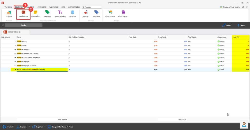 É preciso que as bordas estejam cadastradas no Consumer como Complementos, conforme ensinamos nesse manual. Se elas já estiverem cadastradas, basta acessar Produtos -> Complementos.