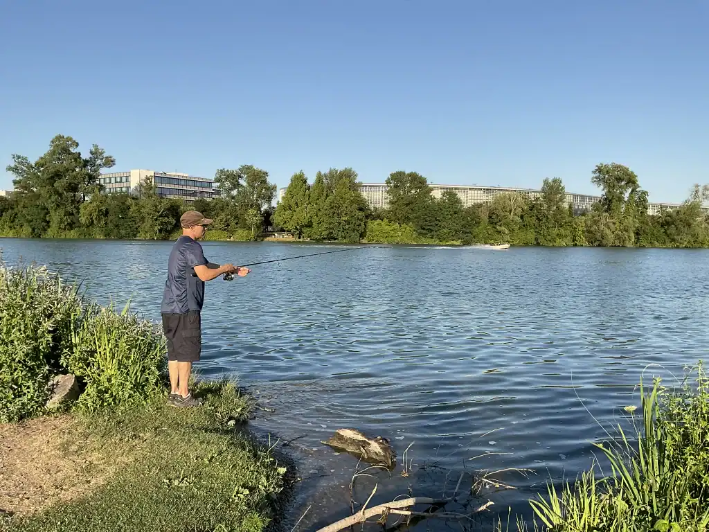 On reprend la route à gauche, c’est-à-dire à l’ouest, par l’étroite promenade qui longe la Saône, fréquentée uniquement par quelques jogueurs et pêcheurs.