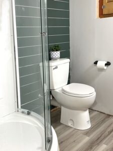 Her latest project was converting an unused storage room into a basement bathroom. The remodel consisted of removing a pre-existing oil tank, cleaning up the space and installing a toilet, shower and sink.