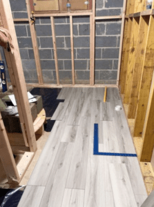 The project began as Sammy mapped out the room for a shower, a toilet right next to the shower, and a sink across from the toilet — all connected to the Saniaccess 3. The plumbing layout, which would run through wall studs, was also designed by Sammy and her husband in advance.