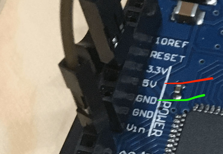 - Last pin connect to the POWER section of Arduino (on Leonardo): 5V.