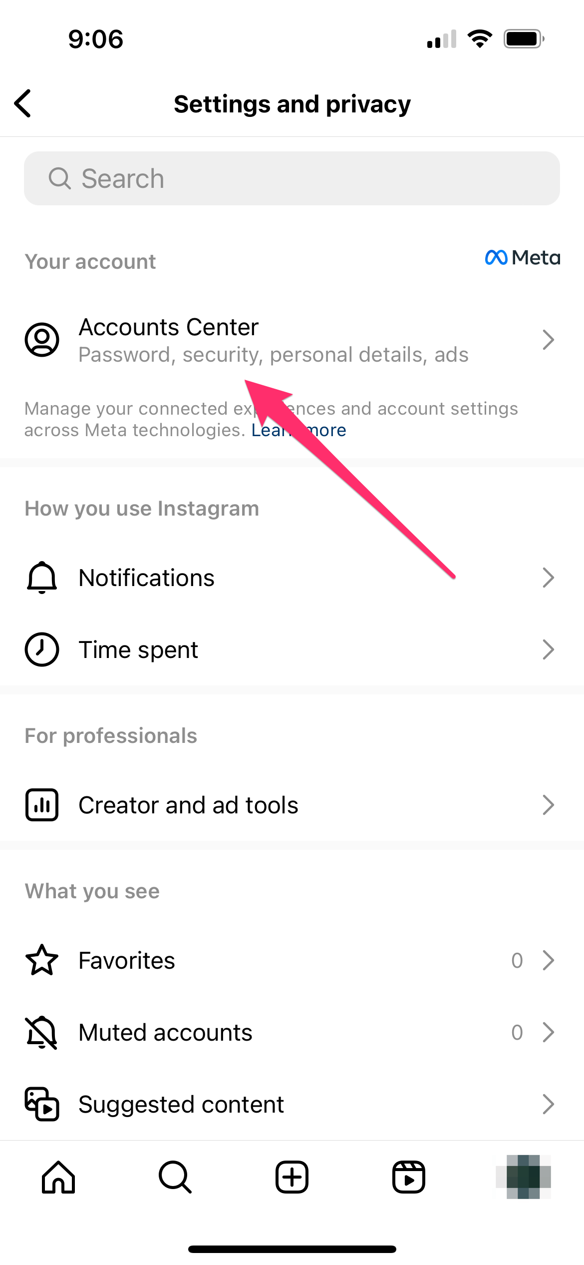 - Tap on Account Center.