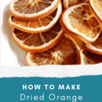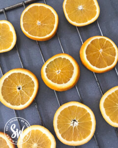 You dry orange slices by popping the slices of orange flat on a baking tray in the oven. It’s easy to make dried orange slices by following my recipe.