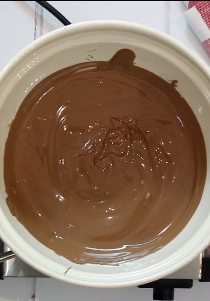 - Melt the chocolate in a large bowl or jug (you can do this in the microwave or over a pan of hot water on the hob, just be sure not to let it burn).