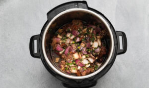 Remove the oxtail from the Instant pot. Set to the side. strain the black bits. Reserve about 3 tbsp of the fats. If your IP looks very burnt, you need to clean it out before you proceed to saute the vegetables. You don’t want burnt tasting food. *See notes below.