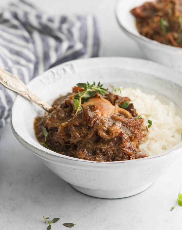 Step 6: Next, slather these on top of some rice which is the most traditional way. You can also add some rice and peas. No rice? Use mashed potatoes or egg noodles. You can eat them alone with crusty bread or, soak up any leftover juices with my cornbread recipe.