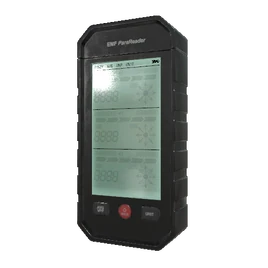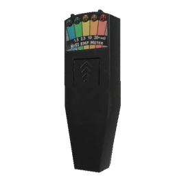 The Tier III EMF Reader is the EMF ParaMeter. It is similar in design to a PDA, with a blocky black plastic shell and a large center screen. It has a 3.5 meter range. It is able to read and track up to three interactions at once, giving the reading's EMF level by filling in dashes, and additionally reads out how far away that the reading occurred from the device (in meters) as well as the direction at which the interaction happened, allowing for the holder to quickly track down where the EMF emission is sourced from.