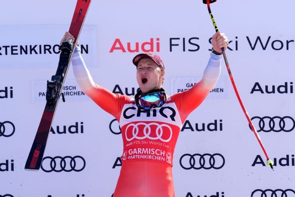 Former Olympic and world downhill champion Corinne Suter won the first World Cup race since the Milan Cortina Games as the chase began Friday for Lindsey Vonn's lead in the discipline standings.