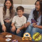 Five Crowns is a five-suited rummy-style card game that appeals to a wide array of card players! This award-winning, classic game is a quick favorite features a unique double deck that contains five suits: spades, clubs, hearts, diamonds and stars! This special deck makes it easier to arrange your entire hand into books and runs. The rotating wild card keeps players on their toes! The game begins with three cards and 3s are wild, the next round has four cards and 4s are wild, and so on ‘til the Kings go wild! Make the right combinations, be the first to go out, then watch players scramble as they get one last chance to cut their losses! It’s a fun and addictive family game that provides great interaction for kids and adults! For 1 to 7 players.