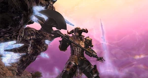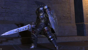 In his second alternate form Heavy Allagan Armor Gaius wears another suit of black armor based on the like named set from Final Fantasy XIV.