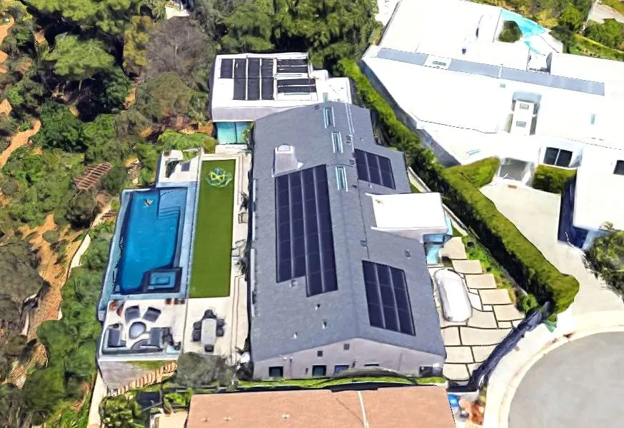 This mansion is located in the Beverly Crest neighborhood of Los Angeles, CA. Furthermore, there is a population of 10,102.