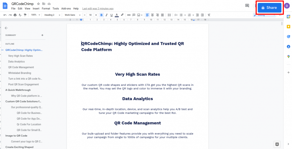 Abra el documento creado y haga clic en el botón 'Compartir'.