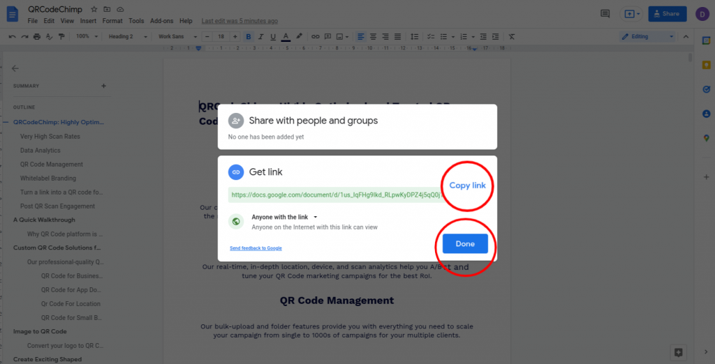 Haga clic en 'Copiar enlace' y luego haga clic en 'Listo'.