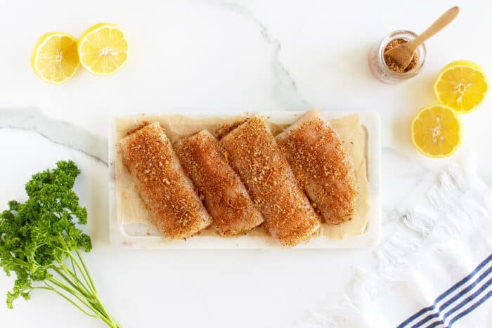 - Brush the mahi mahi fillets with olive oil on both sides and season with the spice mixture generously.
