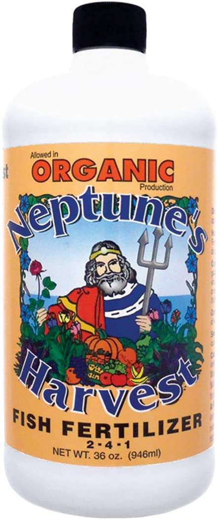 | Neptune's Harvest Organic Fish Fertilizer 36-Oz Bottle Organic, highly nutritional protein fertilizer made with naturally occurring enzymes present in fresh north atlantic fish. Slowly breaks down into basic compounds when added to soil and promotes the growth of beneficial bacteria. Buy On Amazon ; |