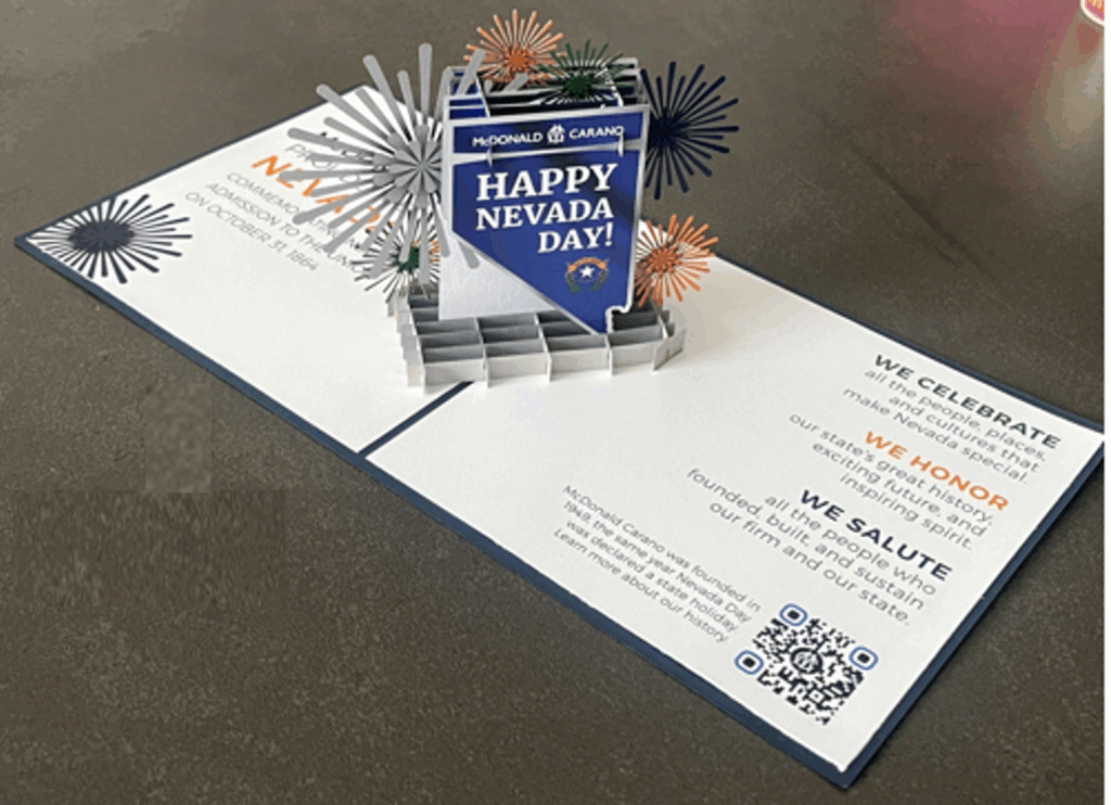 In the cards and videos posted below, we share our celebration of the people, places, and culture that make our State so special. McDonald Carano was founded, built, and sustained by people who love Nevada. We are proud to be Nevadans and proud to be your Nevada law firm since our founding in 1949! In Northern Nevada Business Weekly’s 2025 and 2023 Best in Business Awards, McDonald Carano received 1st Place in the “Marketing Campaign” category for our Nevada Day Celebration campaign and card.