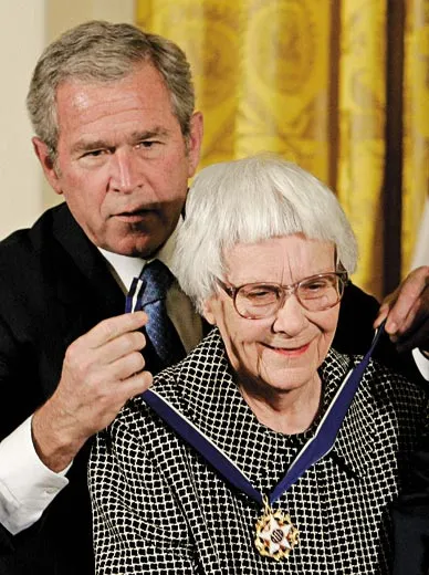 But don’t call her a recluse. Miss Nelle, as she’s known around town (she went with her middle name on the dust jacket because she didn’t want Yankees to elide Nelle Lee into “Nellie”), is that tallish woman with closely cropped white hair who over the years you could see in the aisles of the grocery store or having coffee at Hardees, often in the company of Alice, who also never married. (Lee is rumored to have had a slight stroke in 2008.) They were living comfortably but not extravagantly a short walk from the site of the modest wood-frame house where she, and the book’s narrator, Scout, were raised. (In its place now is an ice-cream stand known, surprisingly, as Mel’s Dairy Dream, and not To Chill a Mockingbird.) She would play golf and, occasionally, fish. (“I’m not like Thomas Wolfe,” Lee said in a 1961 Life magazine interview. “I can go home again.”) During the summer, when she would migrate to New York City, she would go to museums and the theater and root for the Mets, the natural choice for someone with an underdog thing as big as the Ritz. In 2007, Lee went to the White House to accept the Presidential Medal of Freedom, America’s highest civilian honor, from President George W. Bush (and said nothing that was reported). She has a quick and easy smile for those who respect her privacy. But reporters who request an interview through 98-year-old Alice, a sneaker-wearing attorney at the family firm and her sister’s semiofficial gatekeeper, can expect a polite but ironclad refusal. (“Hell no,” Lee herself once wrote in reply to a scribe’s request.)