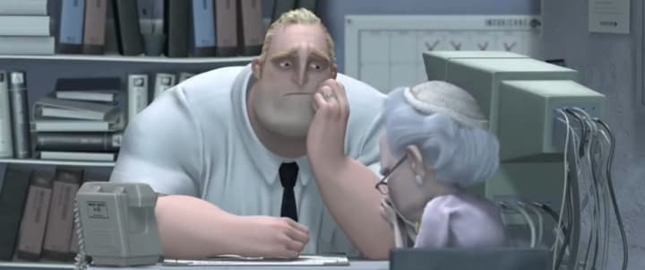 And as we've established, the need for human memory is essential in a lot of Pixar movies. Bob Parr from The Incredibles is clearly very scared of the idea that one day, people will forget about Mr. Incredible and as a result, Mr. Incredible will cease to exist.