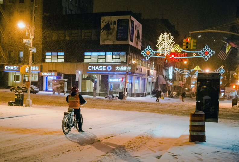Given all the obstacles they have to dodge to deliver orders, delivery guys get paid back handsomely for their trouble, right? Yeah, not so much. Here's a fun bit of seasonal data to put things into perspective: on January 26th, 2015, at the height of the blizzard that effectively "shut down" NYC, Seamless saw the city's tipping average increase from 13.1% to 14.04%. So, during a god-damn blizzard, New Yorkers increased their tips by less than a full percentage point. If we're not giving these guys more when they have to ride a bike through a fucking snowdrift, it's a safe bet we're not doing it when it's raining. Stay classy, NYC.