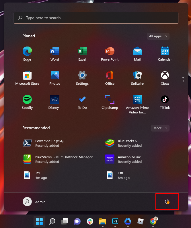 - Press and hold the Shift button and open the Start menu.