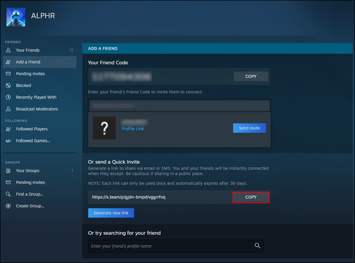 - Once your friend uses the link, they’ll be your Steam friend immediately.