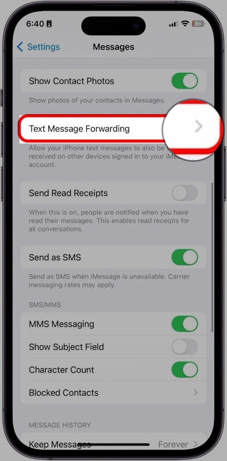 If you want to forward SMS to a new phone number, an email address, or an Android device, you’ll need a third-party solution such as AutoForwardText.