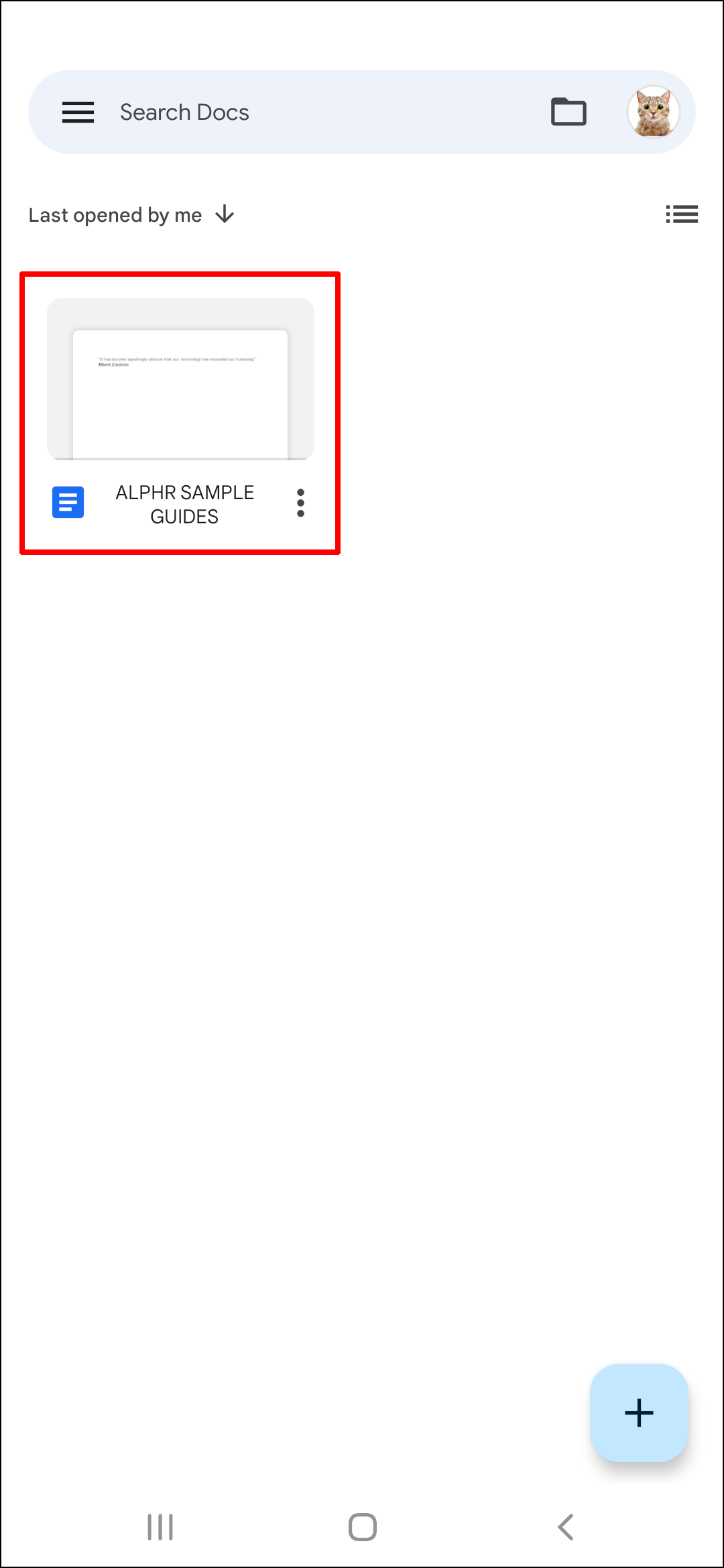 - Open your Google Docs app, and select a new or an already existing document.