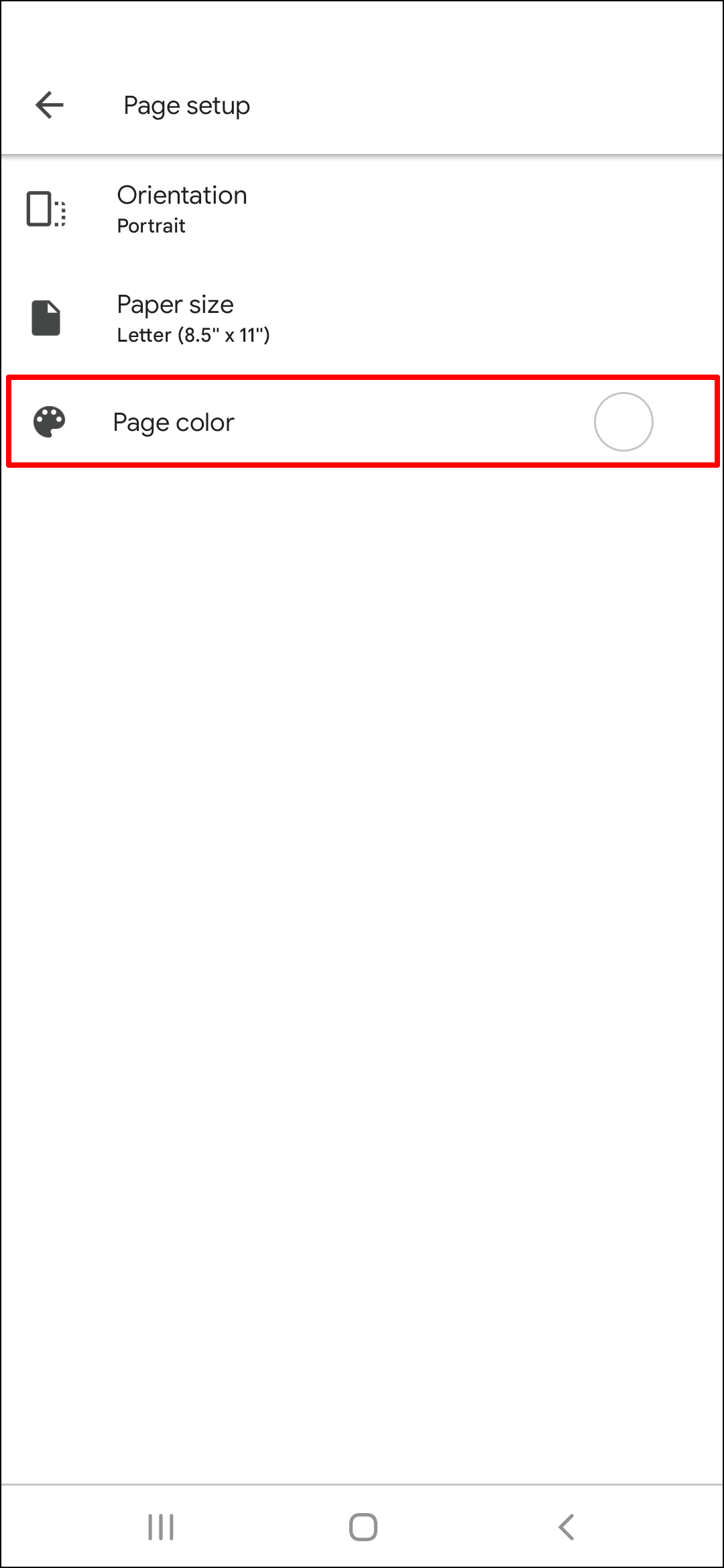 - Tap on “Page Color.”