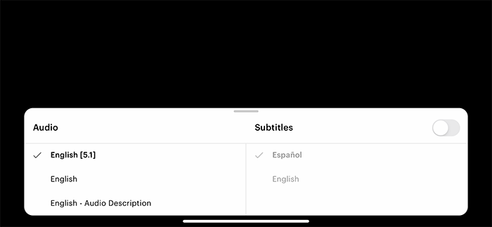 - Choose the Audio you prefer or Subtitles in the language you want.