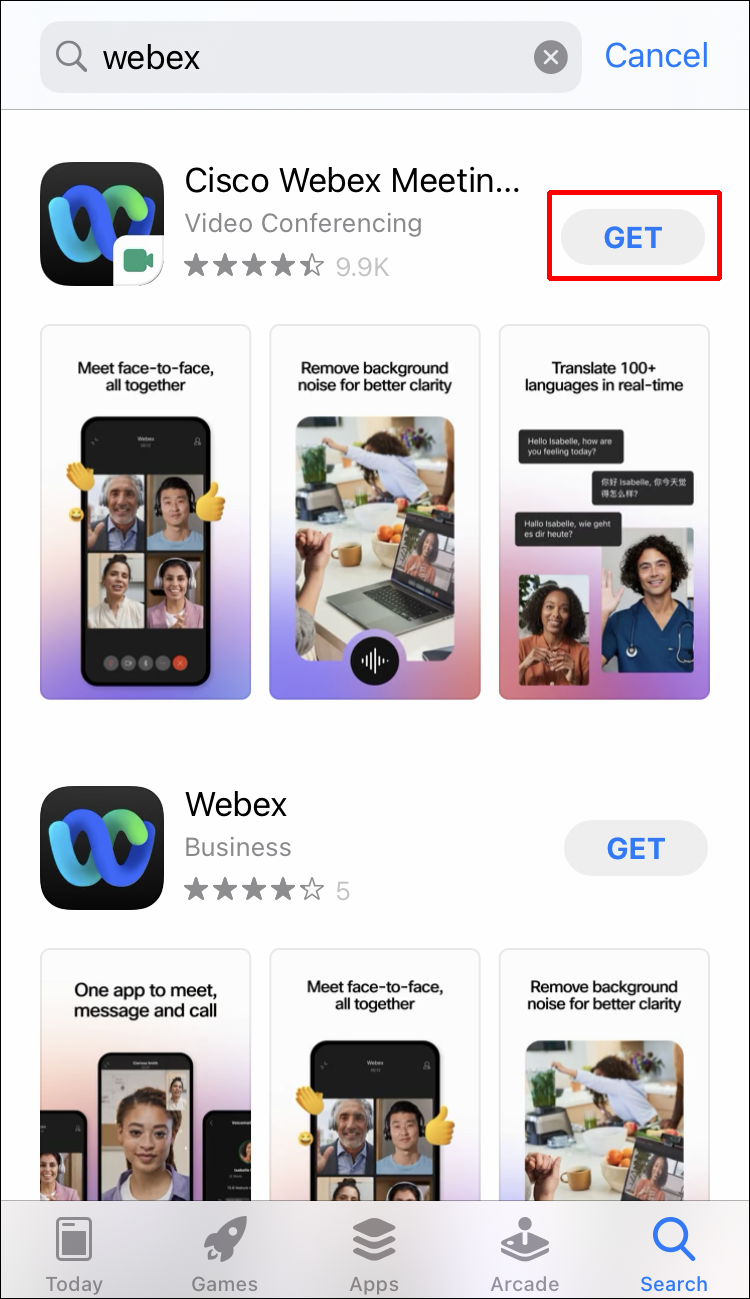 As mentioned, there’s a Webex mobile app available for iOS devices. You can get the official version at the App Store: