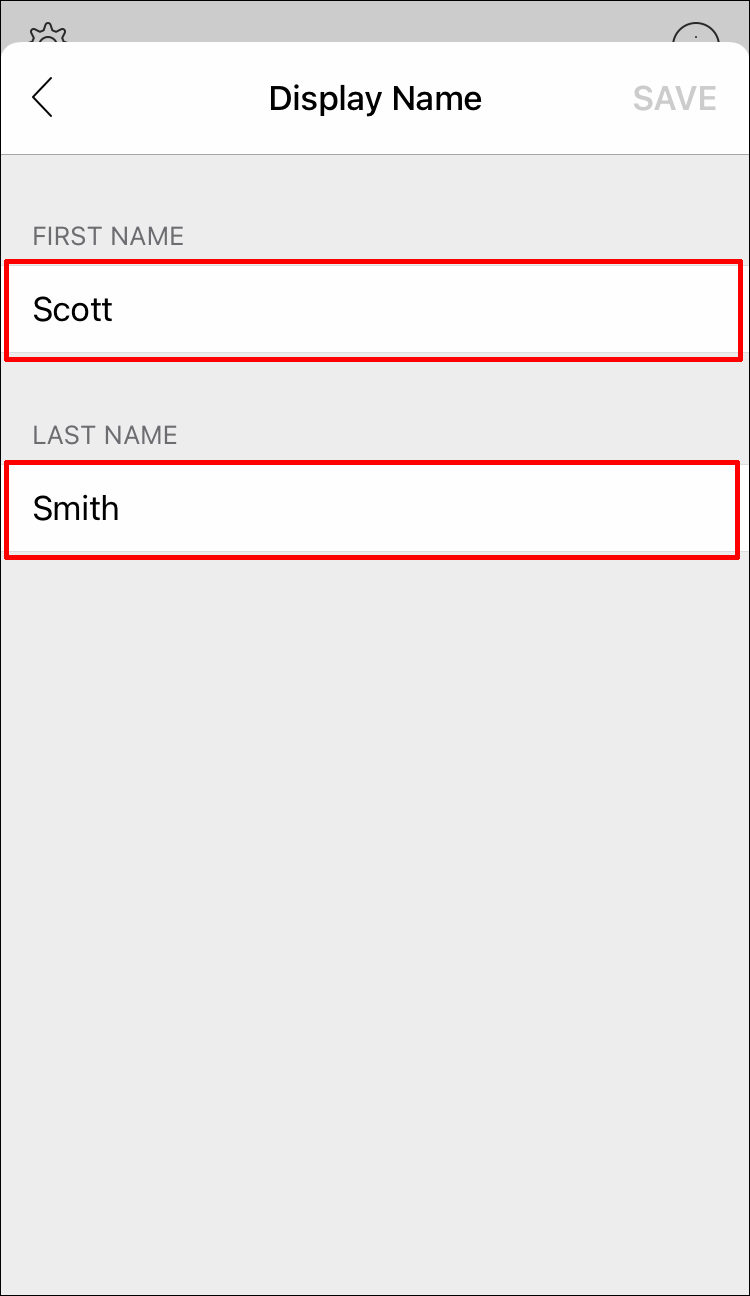 - A new window will open. Tap on your current display name.